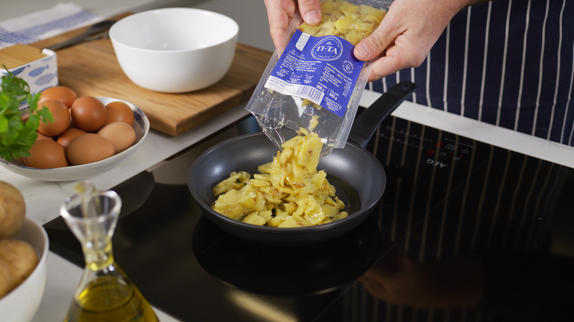 El preparado de patata Ti-Ta garantiza la tortilla más sabrosa del mercado y en tan solo 5 minutos.